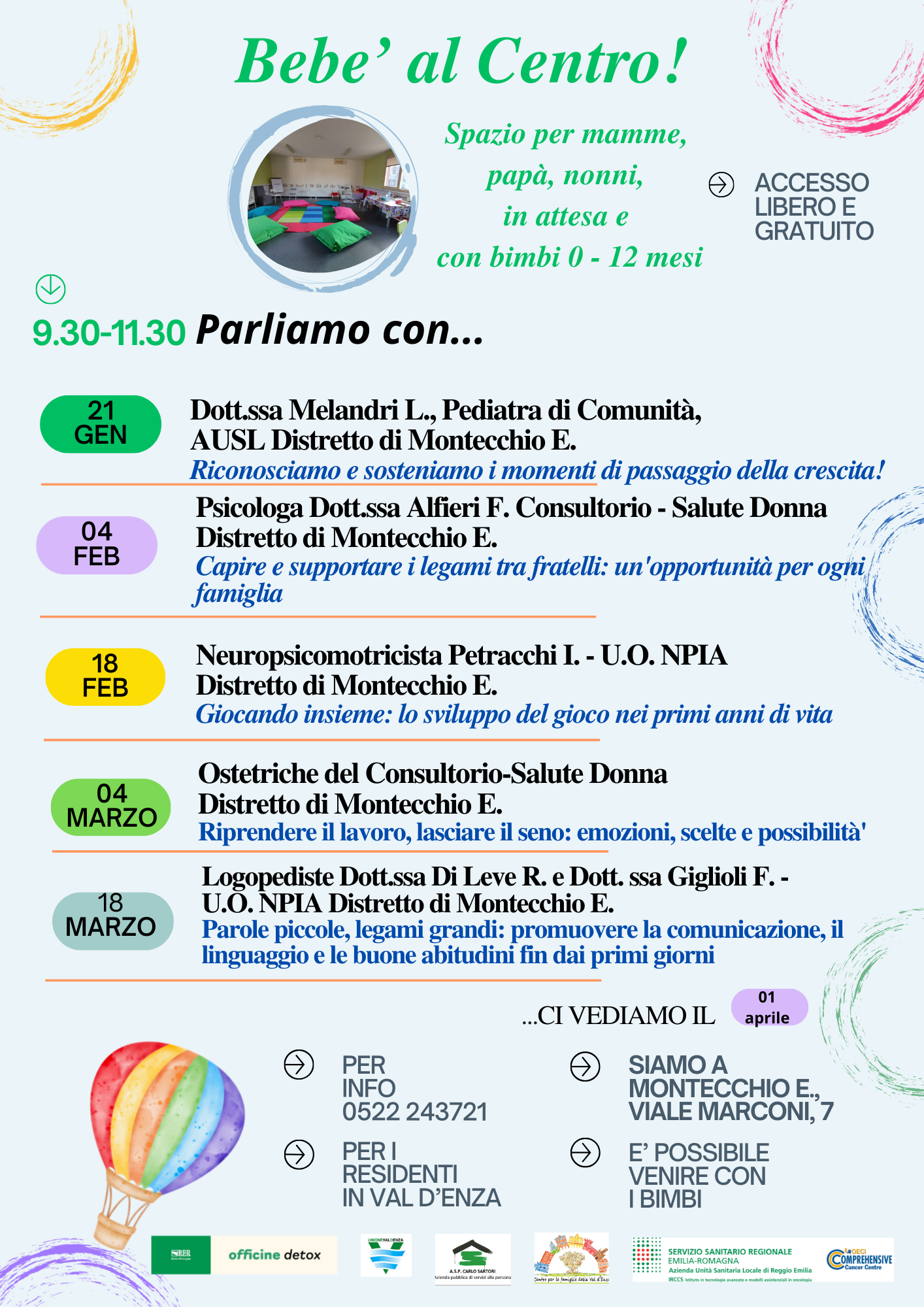 Spazio di incontri rivolto a mamme, papà, nonni in attesa e con bambini tra gli 0 e i 12 mesi.