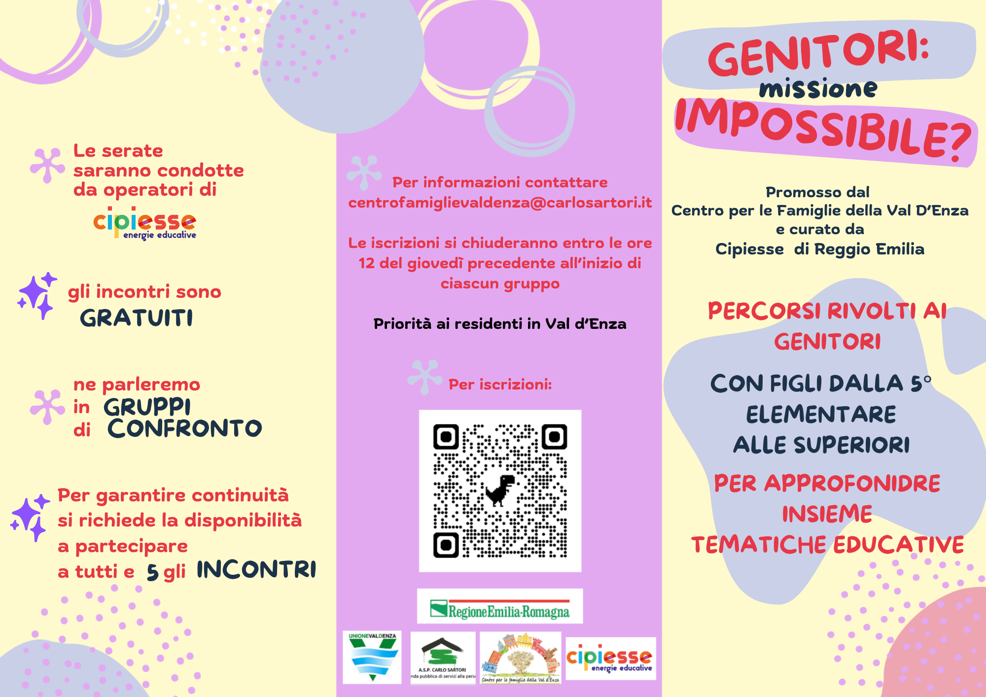 Nuova edizione dell'iniziativa "Genitori: missione impossibile?". Gruppi di confronto, per approfondire tematiche educative, dedicati a genitori di figli/e iscritti dalla classe 5 della scuola primaria a tutte le classi della scuola secondaria di primo e secondo grado.